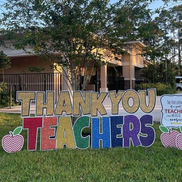 Let us help make Teacher Appreciation Day special and unforgettable with our custom yard cards, creating a festive and heartfelt environment that celebrates the amazing contributions of your educators!